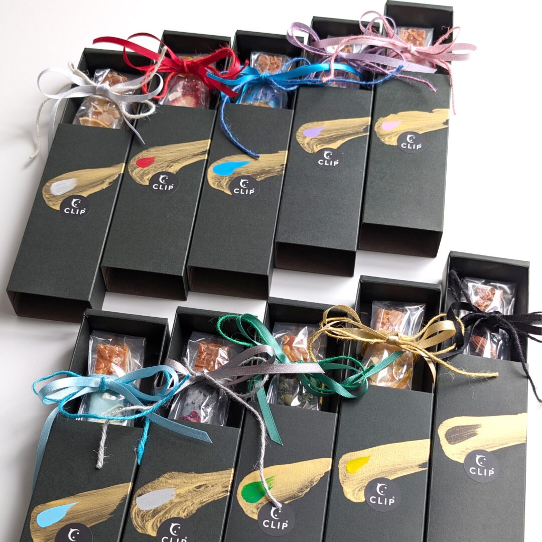 手書きのデコレーションが施された箱を個包装でパッケージング! 唯一無二の存在感でどれひとつ同じものがありません。